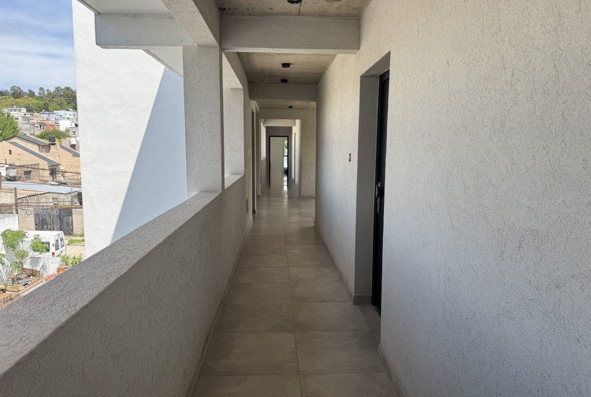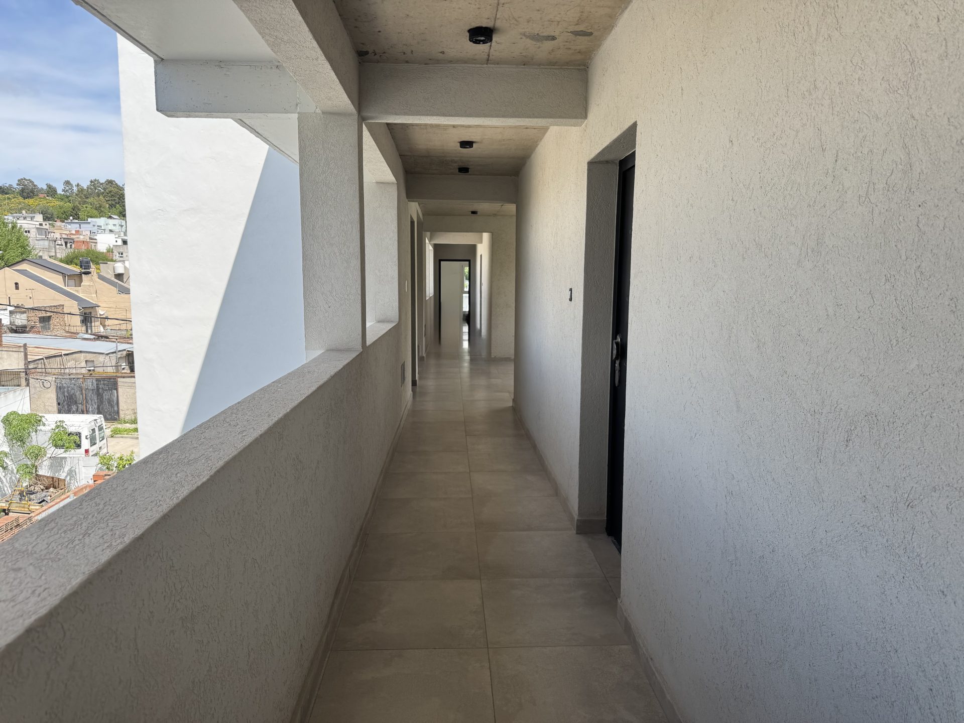 Áreas comunes: palier cerrado con ascensor y terraza en el cuarto piso con vistas panorámicas a la ciudad y las sierras.