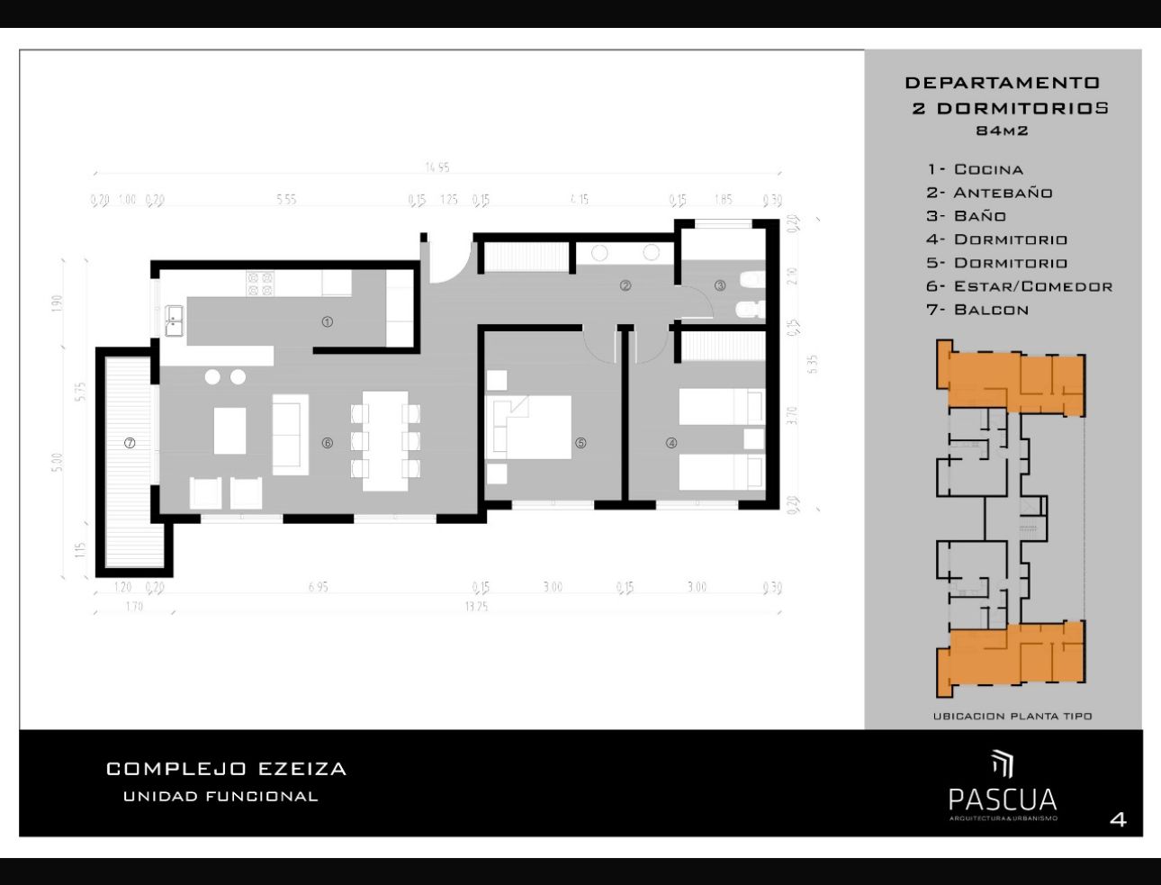 80m2 cubiertos + 5 m2 de balcón+ 12 m2 semicubiertos de cochera.