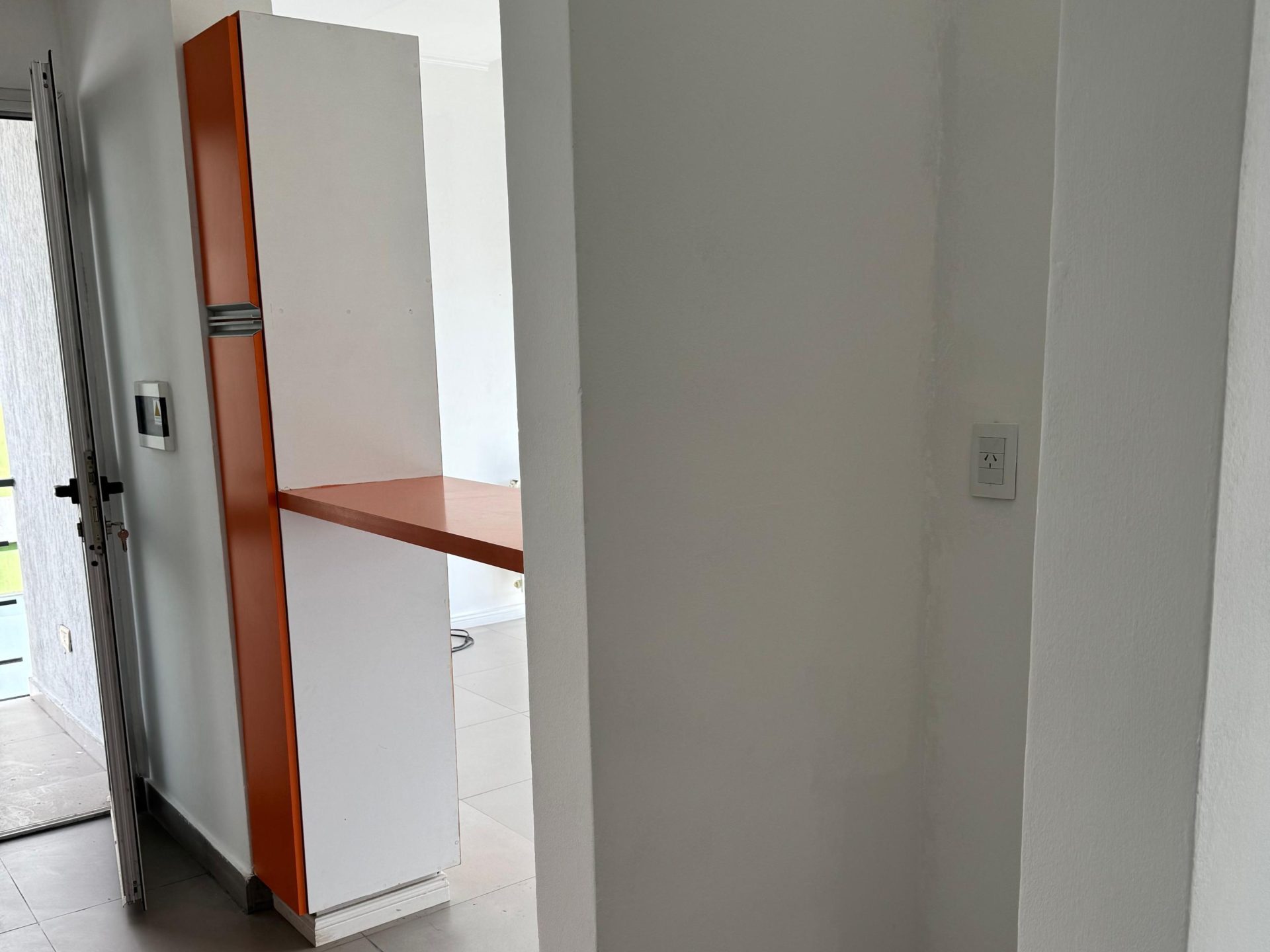 El departamento está en 2do. piso al frente (por ascensor) tiene un dormitorio con placard completo, aire acondicionado instalado, baño completo, cocina con bajomesada, artefacto de cocina y extractor. La cocina se integra con el estar comedor mediante una barra y tiene salida al balcón.