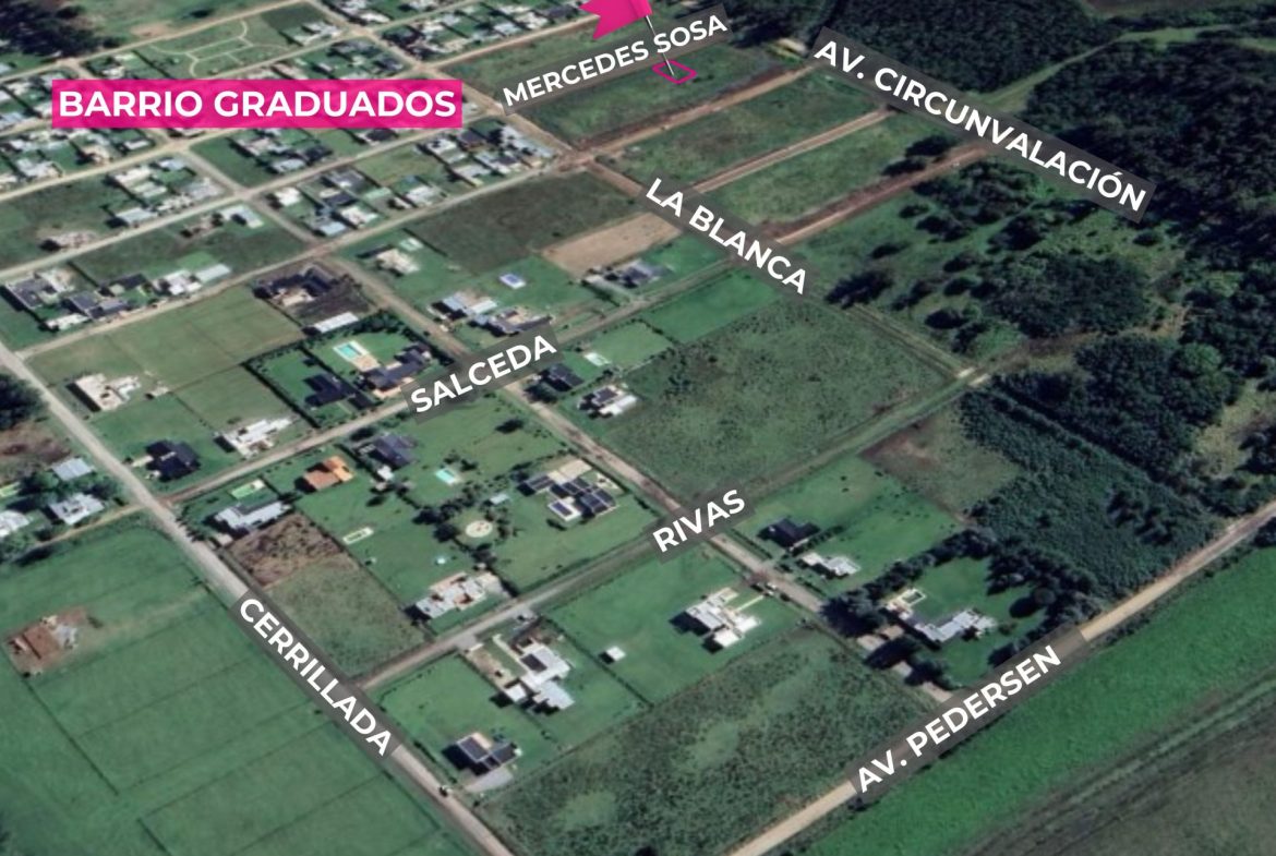 Vendemos terreno en Barrio Club Vistalli, frente a Barrio Graduados, sobre Pasaje Mercedes Sosa.