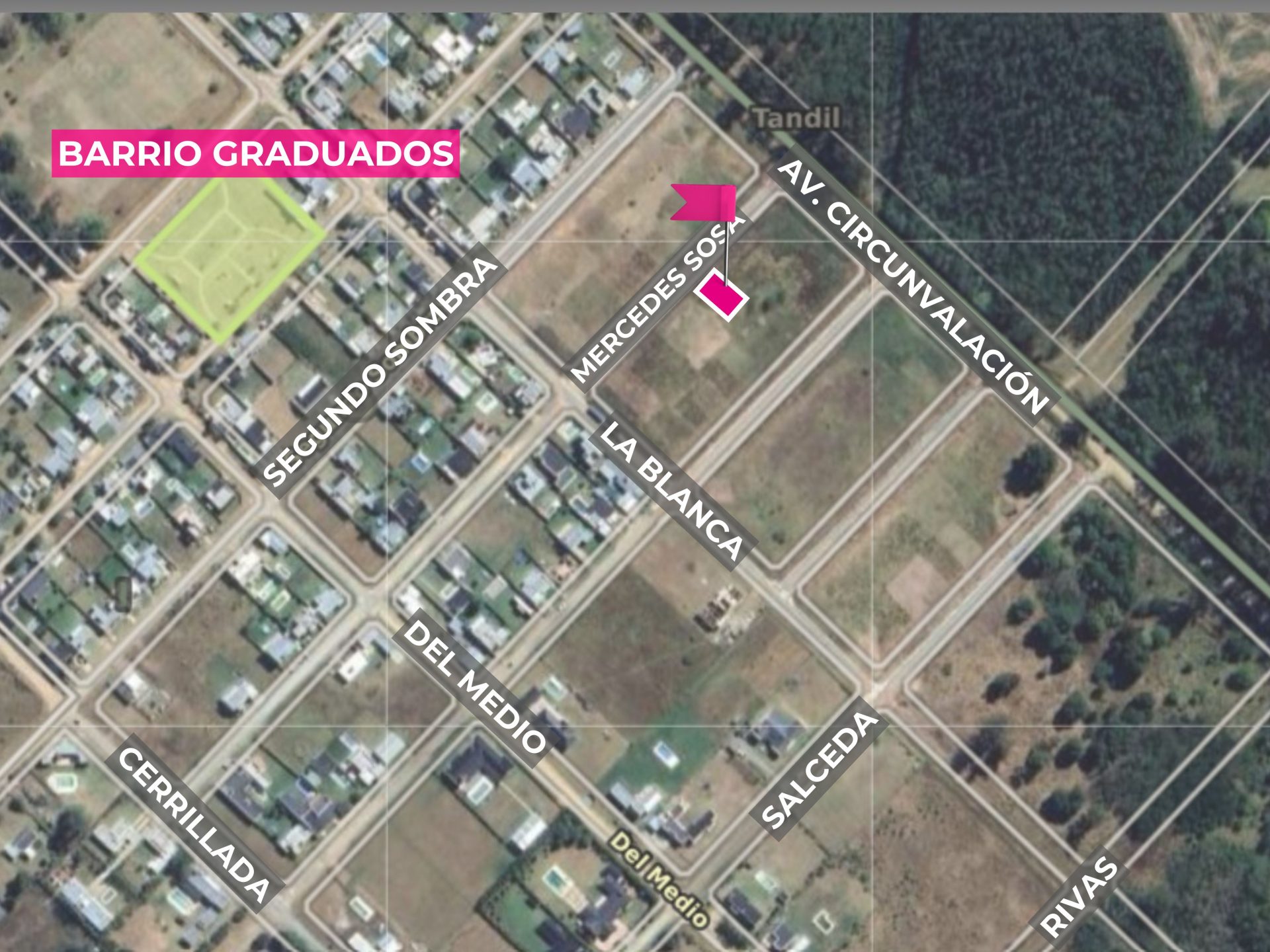 En frente se encuentra el Barrio Graduados, un barrio nuevo, con casas de 10 años de antigüedad y familias jóvenes.
