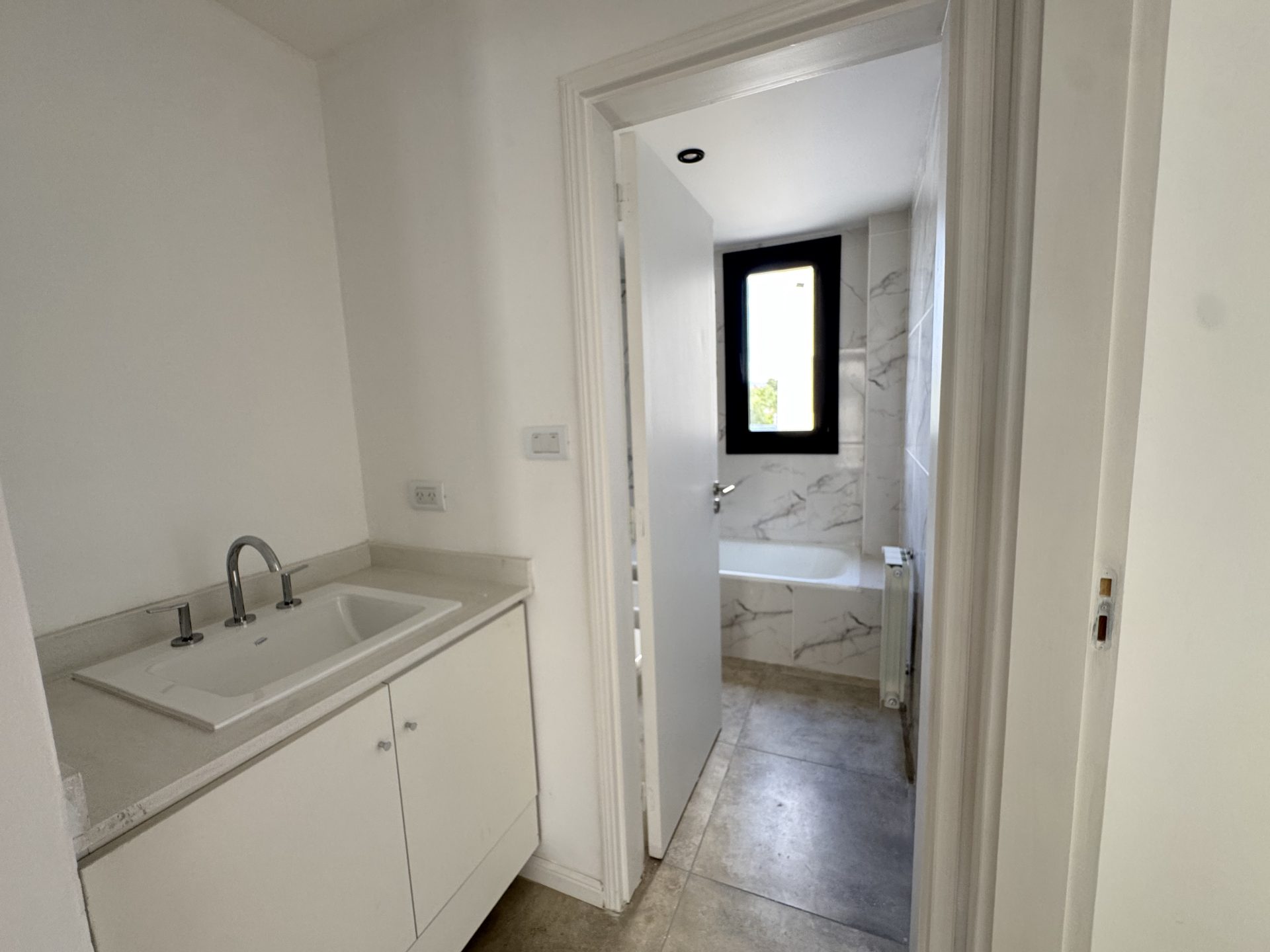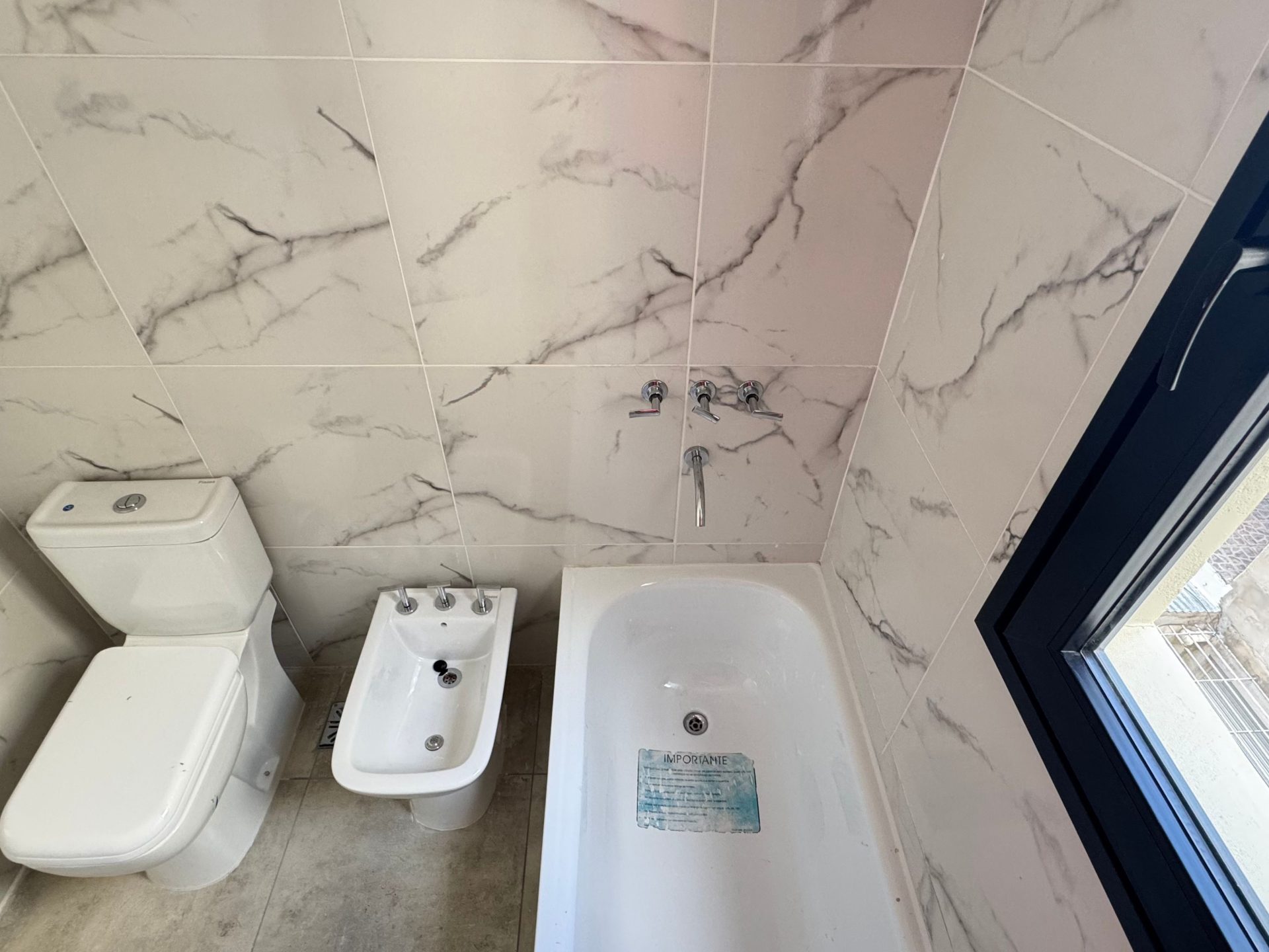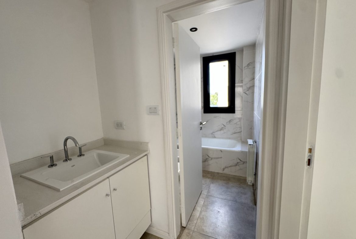 El baño es completo, compartimentado y con ventilación natural, muy luminoso.